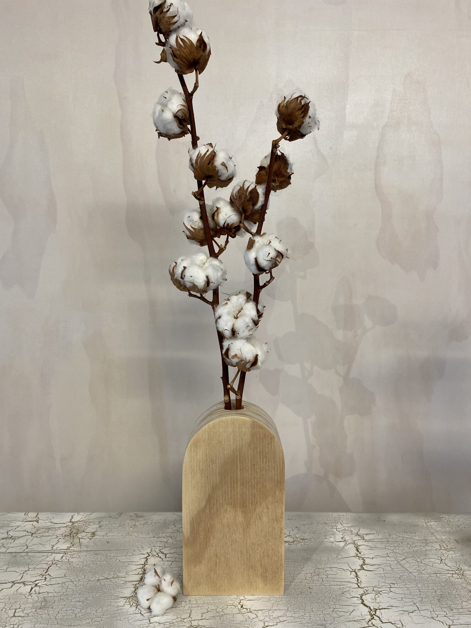 Two stems of the most beautifully formed C O T T O N we’ve ever seen! Displayed in a tall handcrafted wooden vase designed by New Plymouth creatives Woven – part of their new ”Arctic Range”. A unique everlasting gift that makes a statement!